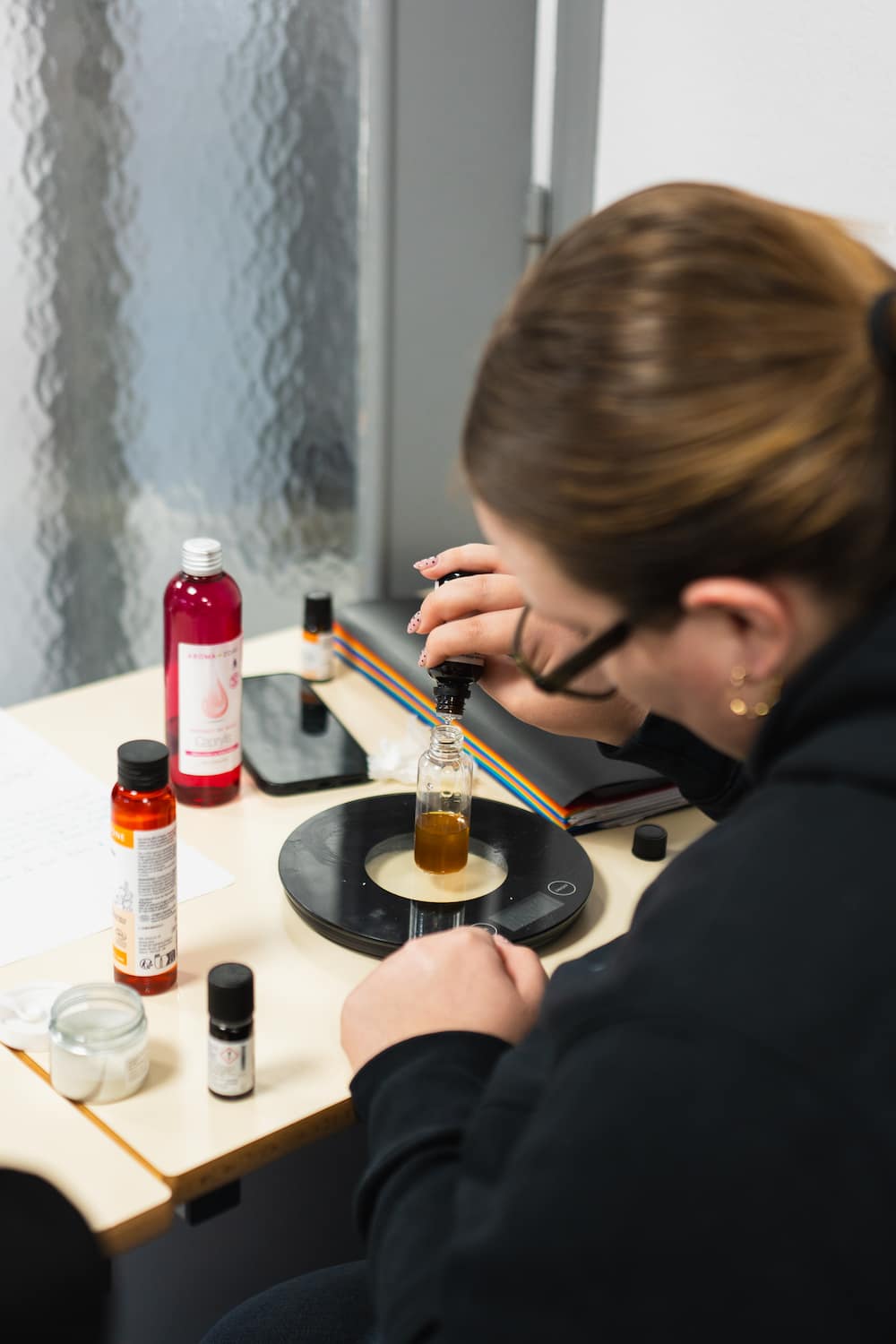 Sous le regard de leur formatrice et à partir des produits Aroma-Zone - enseigne de référence pour la création cosmétique - nos élèves on pu élaborer leur propre produit capillaire : du soin hydratant au sérum nourrissant destiné aux cheveux bouclés en passant par l'huile pour barbe et shampoings spécifiques, de la mangue à la fleur de coton, chacun(e) a pu repartir avec un soin efficace, ciblé, parfumé et... unique !